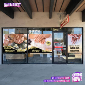 Make people stop, stare, and use your salon services by giving your salon the right impression from the start. Our window decals are visible from one side and seen through from another side, making them perfect for salon window displays while still keeping privacy inside the salon.