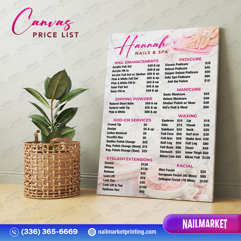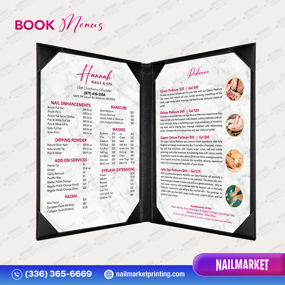 Your nail salon deserves to shine. Take a look at the Grand Opening package we created for Hannah Nails & Spa – each piece is designed with a refined pink and white marble palette that brings a sophisticated, stylish touch to the entire space. If you’d love to elevate your salon with this elegant combination, we’re here to help you get started.
