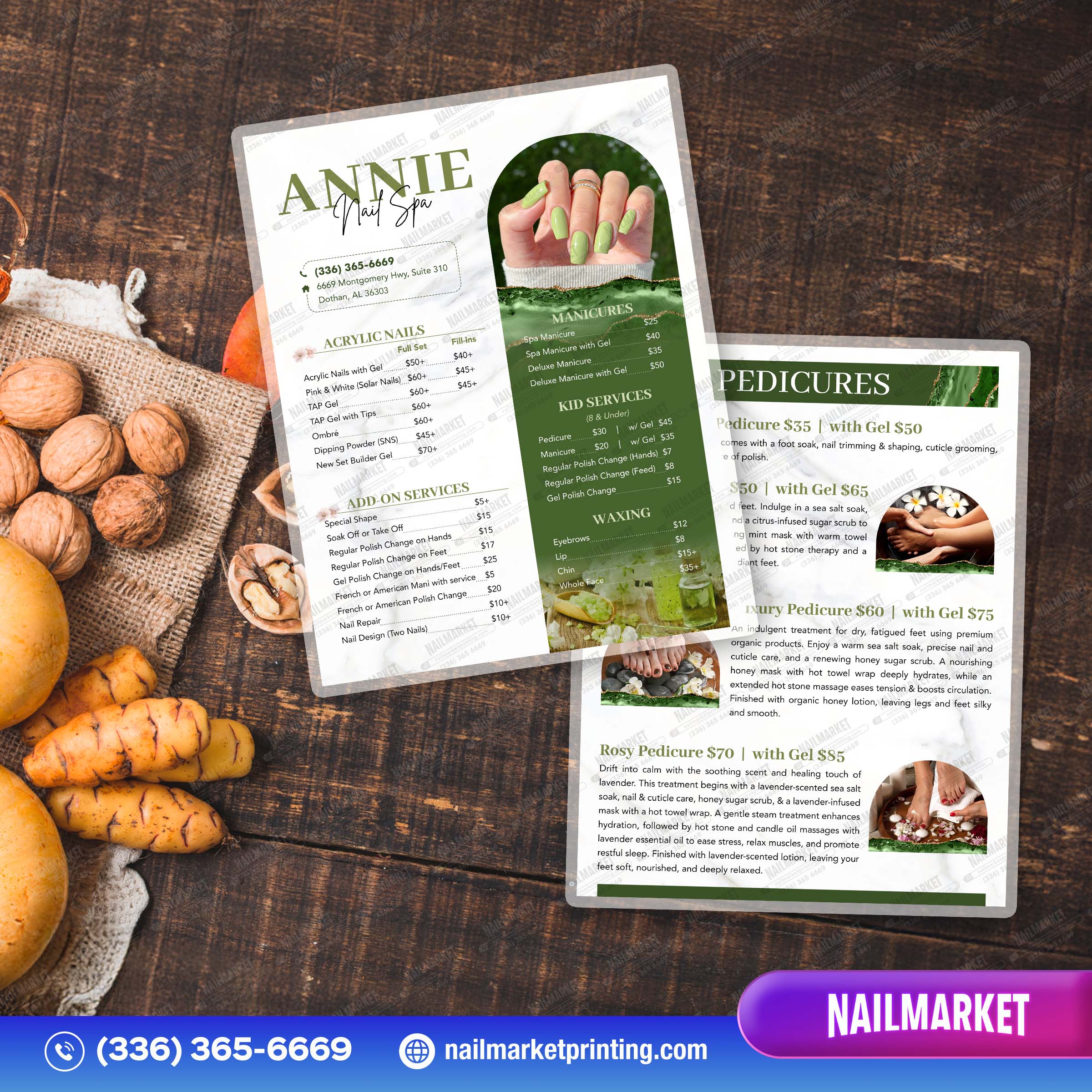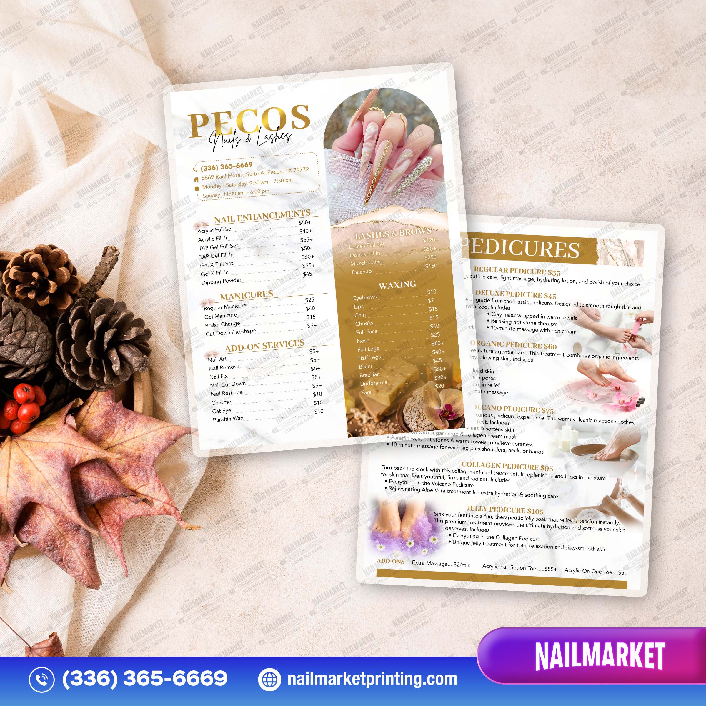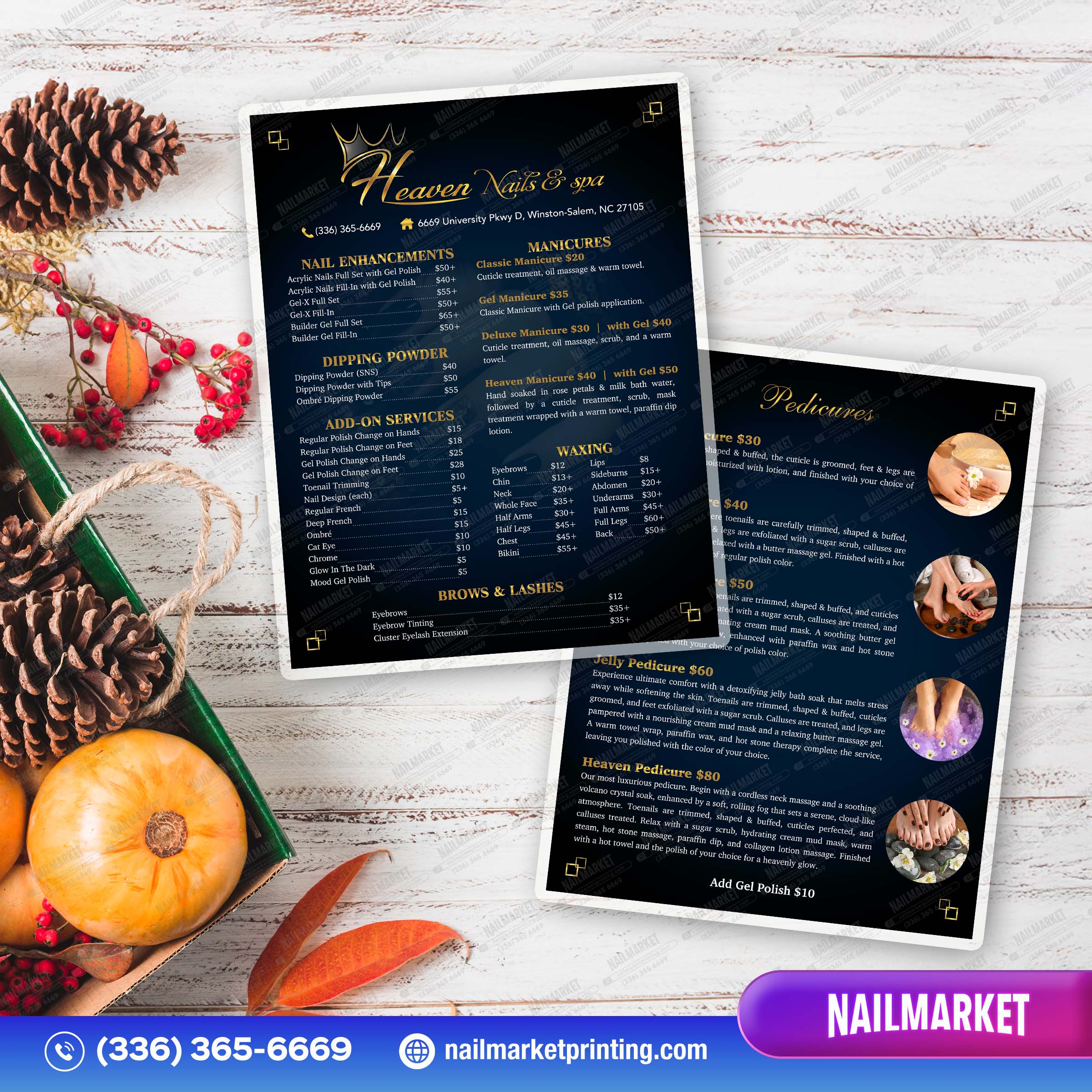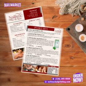 Unlike delicate, flimsy paper menus, our heavy-duty laminated menus are built to withstand spills and bangs. You can choose a design from our collection below or request a customized design for your salon! Enjoy FREE design services & FREE shipping all over the US!