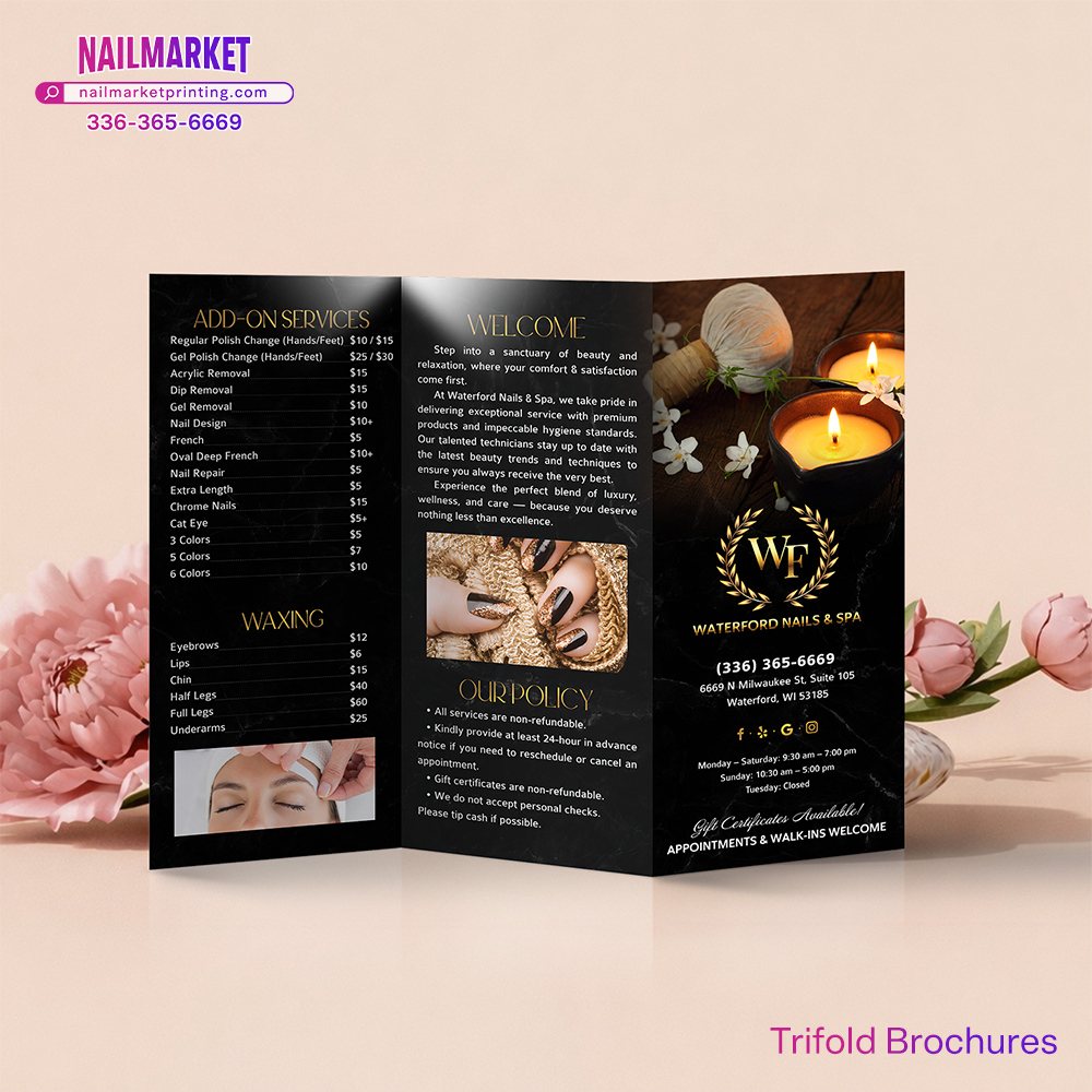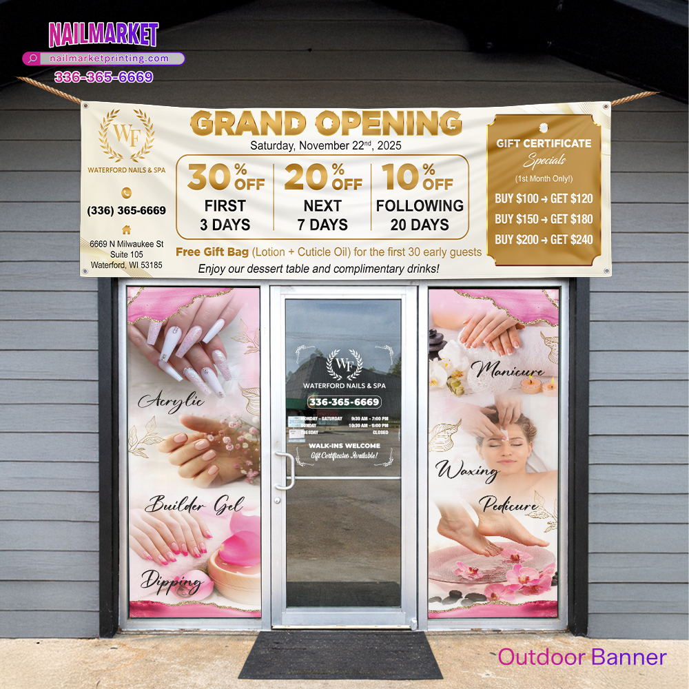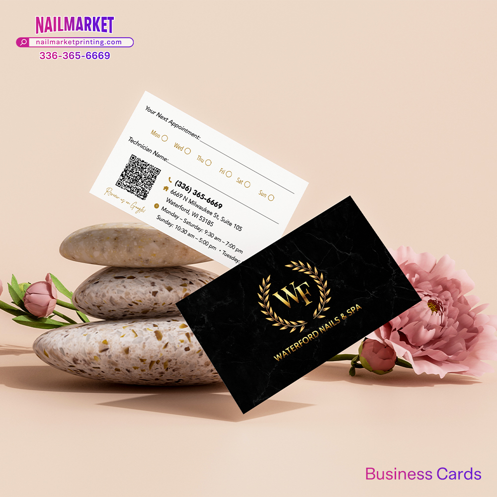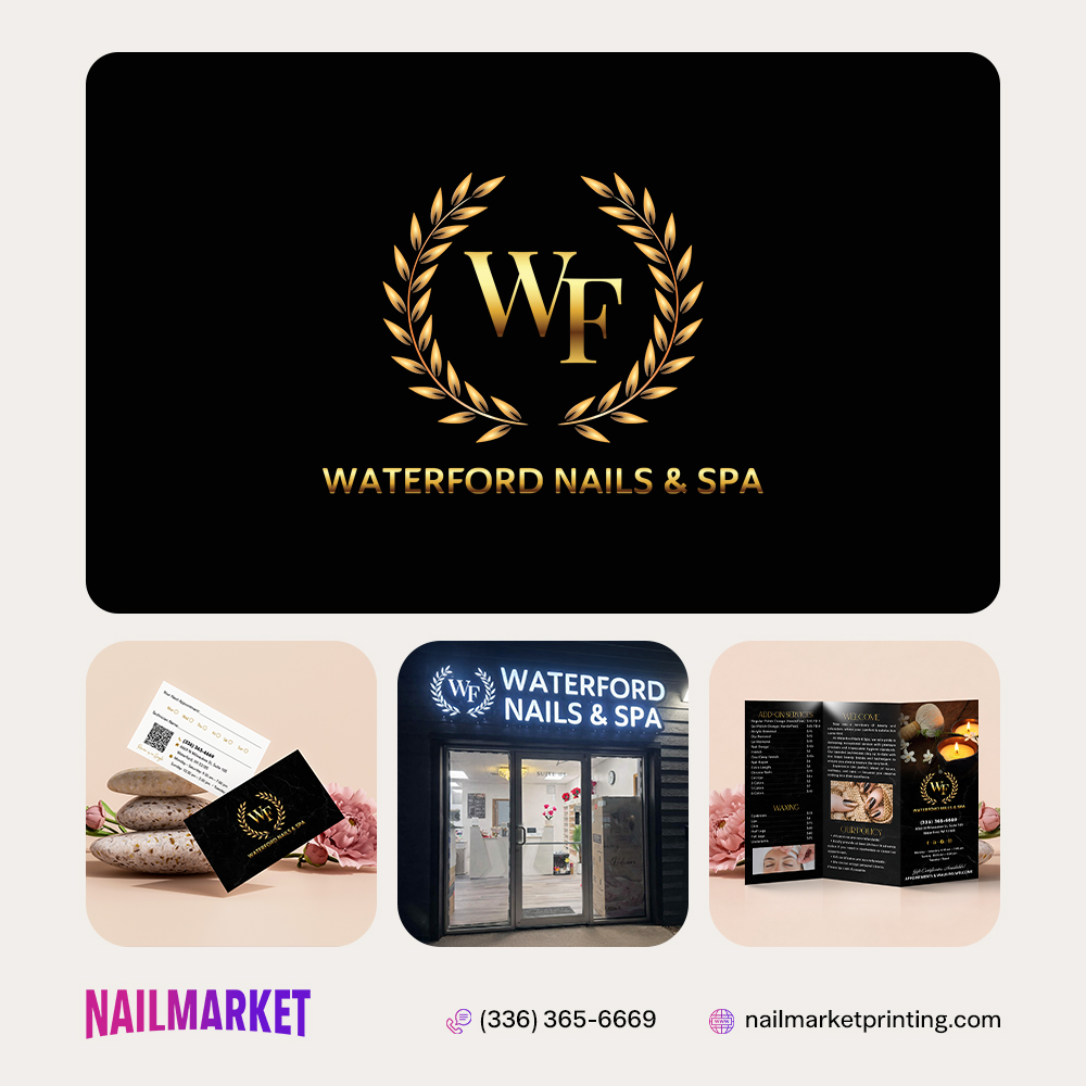 A strong salon begins with a professionally crafted brand identity. Consistent visuals from day one help your salon stand out, build recognition, and establish credibility with clients. By handling design and printing in one place, you can stay focused on staffing, setup, and your grand opening – without distractions. NailMarket is honored to have partnered with Waterford Nails & Spa to deliver a complete Grand Opening branding package, thoughtfully designed, fully cohesive, and ready to use from day one. Opening a new salon or elevating your brand? Let NailMarket bring your vision to life.